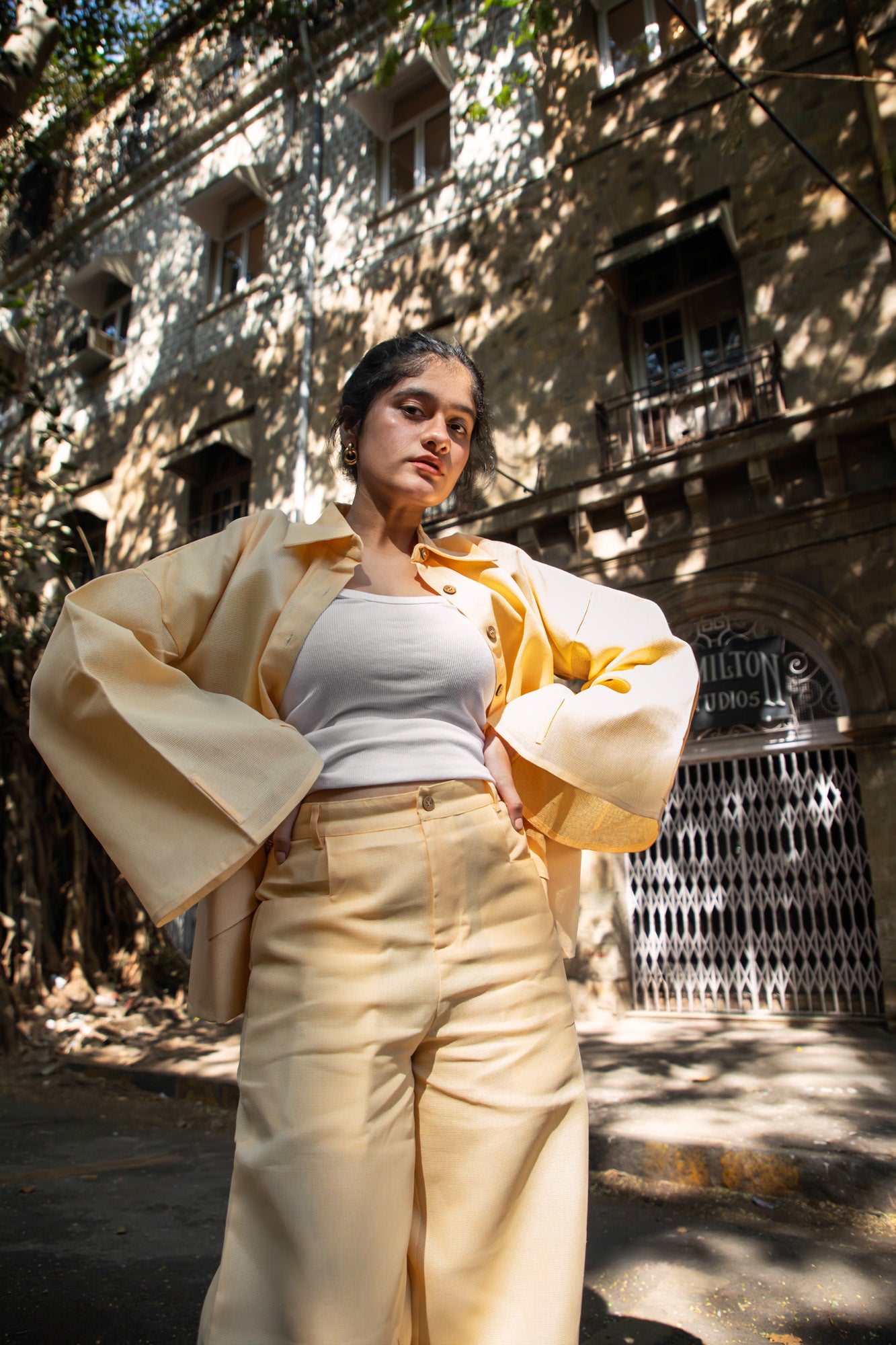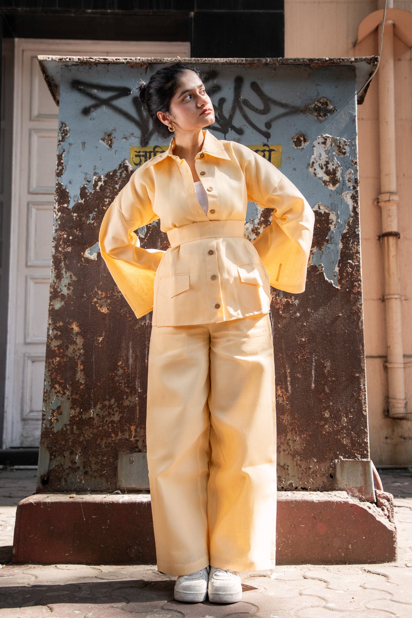 These high-rise trousers embody relaxed sophistication with their clean lines and understated tailoring. Cut from lightweight linen, they feature a structured waistband and a boxy, wide-leg silhouette that creates a long, architectural drape through the leg. The cropped hem adds a contemporary feel, making them ideal for both city dressing and laid-back escapes. Pair with the coordinating shirt jacket for a striking tonal look.