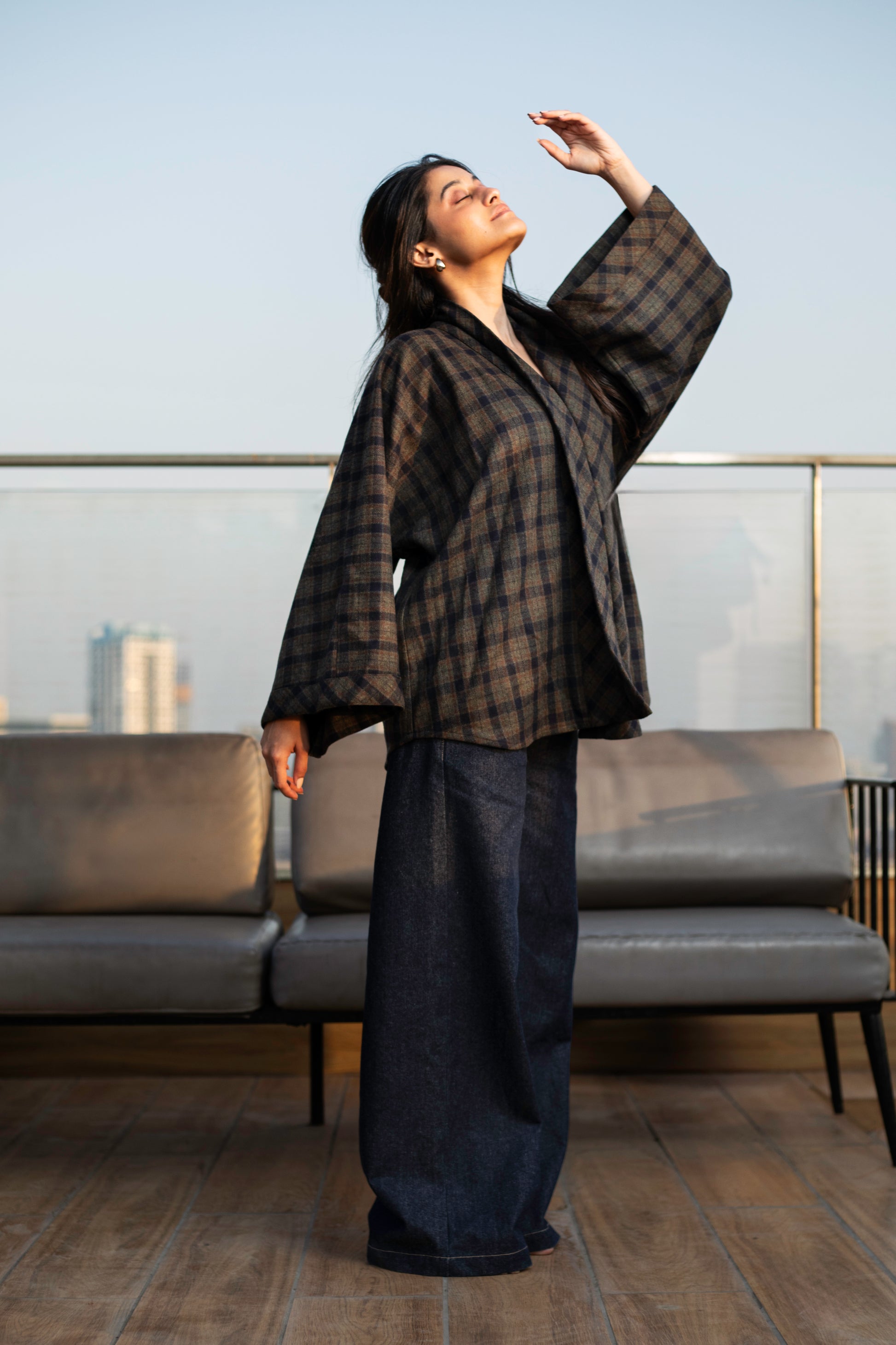 Woven from the finest pashmina, this robe embodies refined luxury and understated exclusivity. Designed for those with a discerning eye, it offers the warmth of a blanket combined with the elegance of bespoke craftsmanship. The carefully chosen colour-blocking in deep blue and green creates a timeless, balanced pattern, reflecting a subtle yet unmistakable sophistication. A piece for those who appreciate the finest materials and a legacy of true refinement.