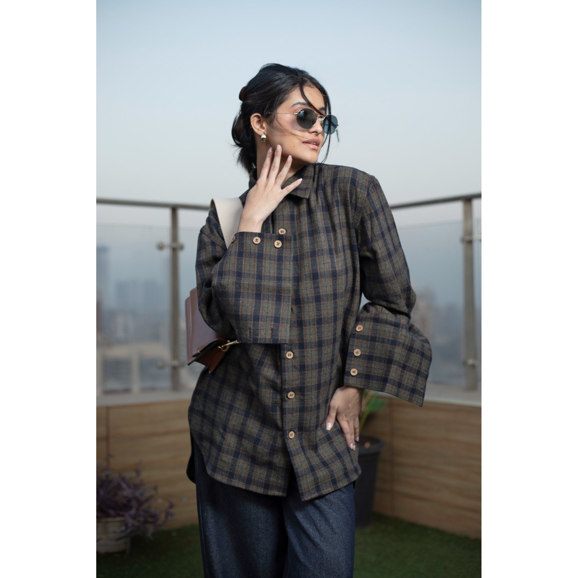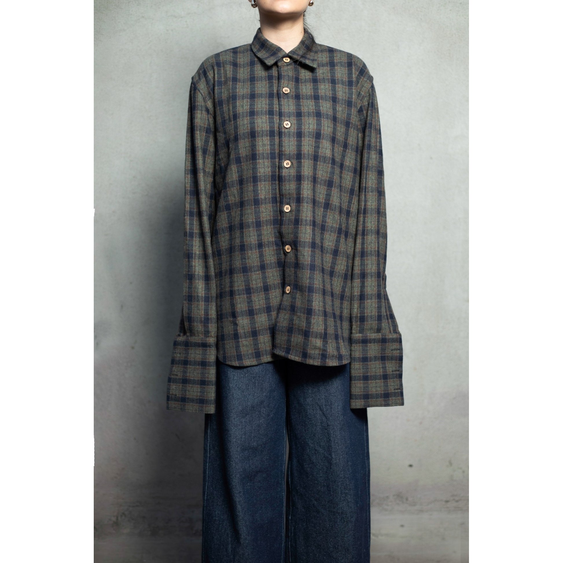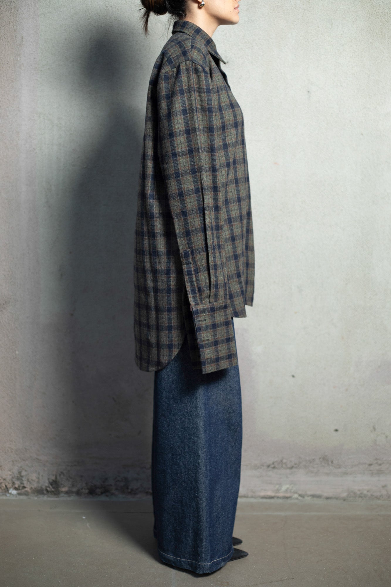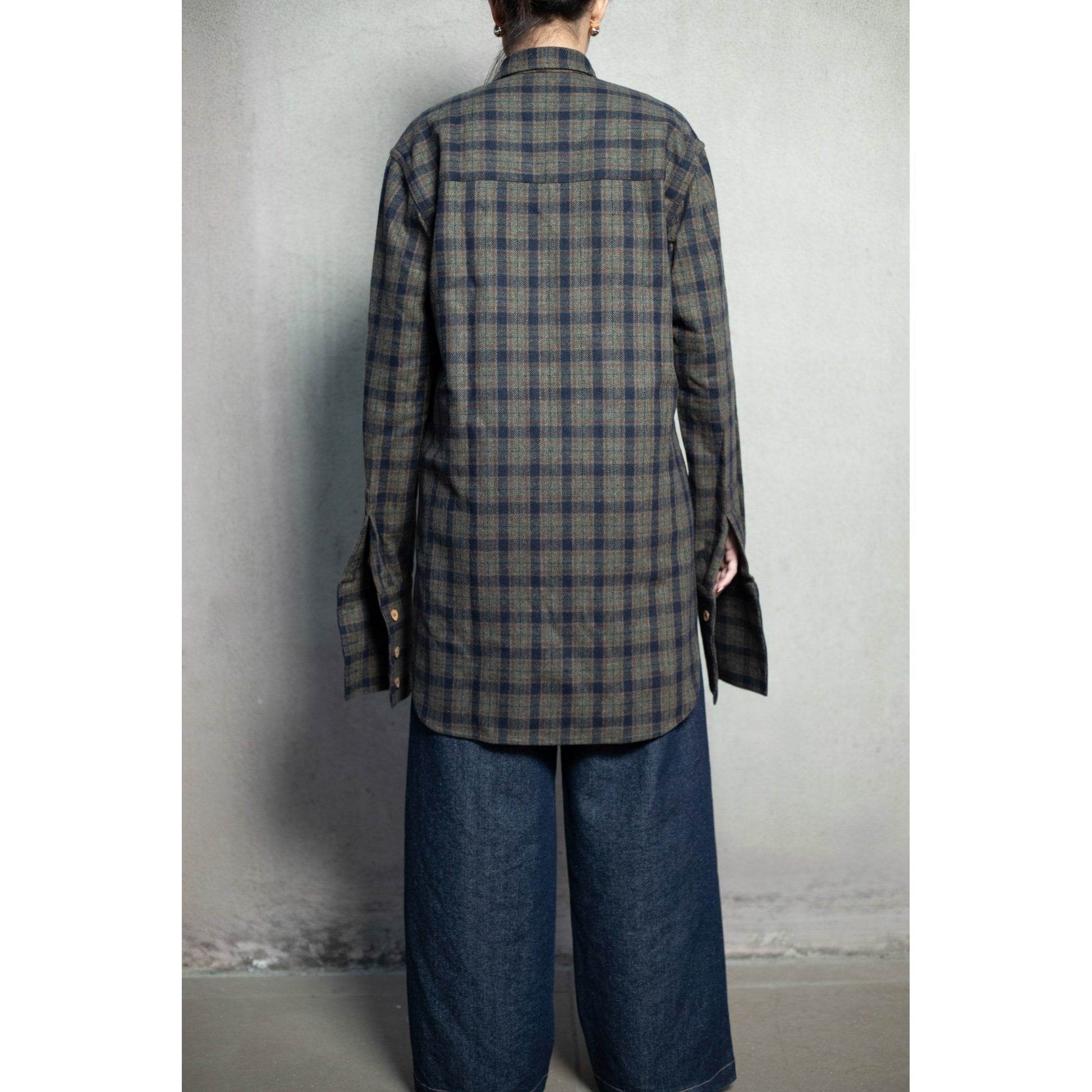 Made from the finest pashmina, this oversized, unisex shirt embodies quiet sophistication. Its relaxed silhouette offers unparalleled comfort, while the refined blue and green colour-blocking creates a harmonious balance of tones. The result is a piece that exudes timeless elegance with effortless ease. Crafted for those who appreciate the finest materials and subtle luxury, this shirt is a perfect expression of understated style.