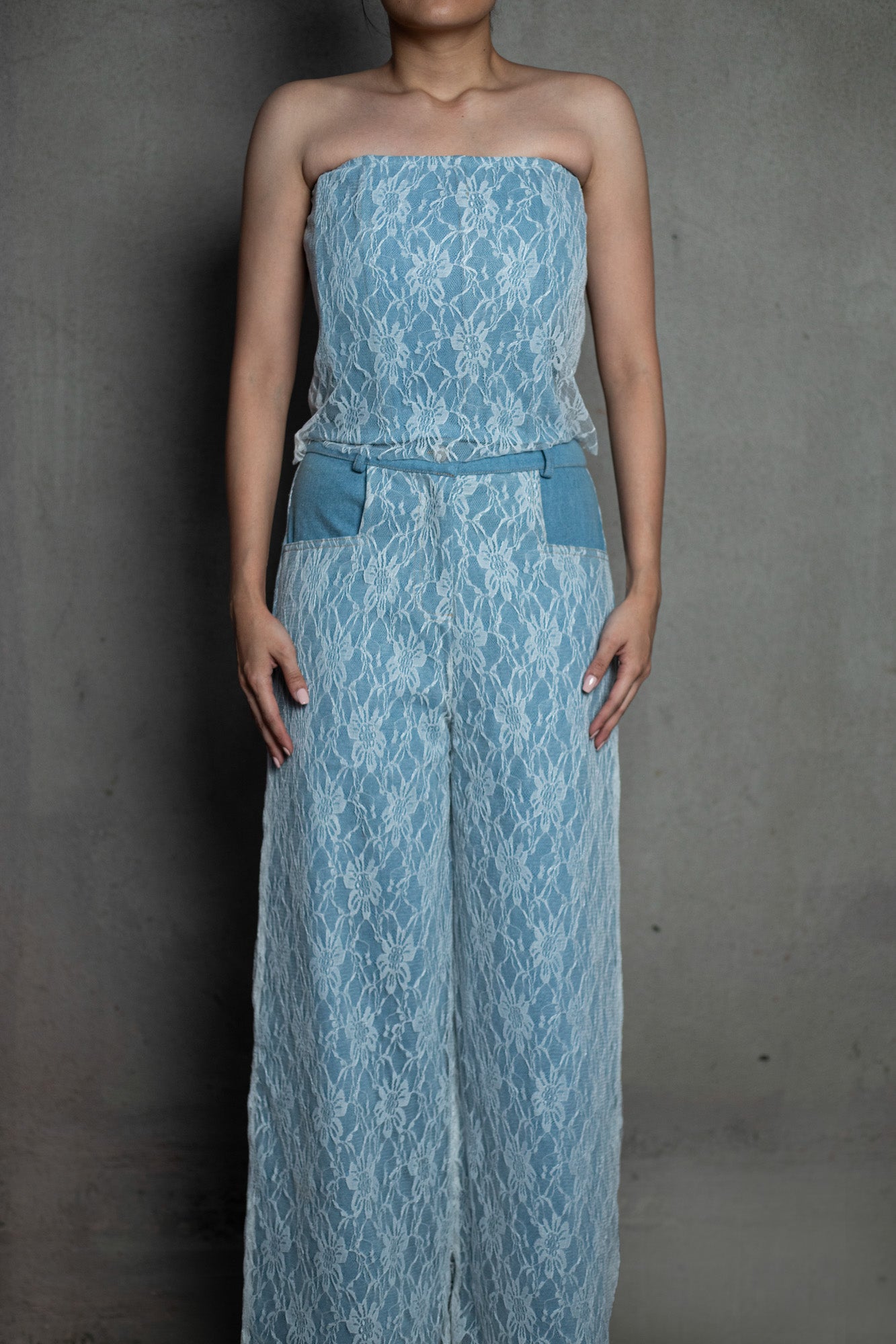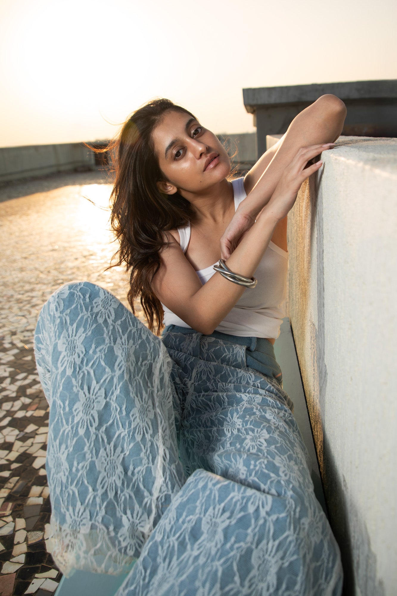 A romantic rework of utilitarian denim, these high-rise trousers are layered in delicate lace for a textural contrast that feels unexpected yet refined. Tailored with a straight-leg silhouette, they’re finished with exposed patch pockets and a tonal belt for sculpted definition.
